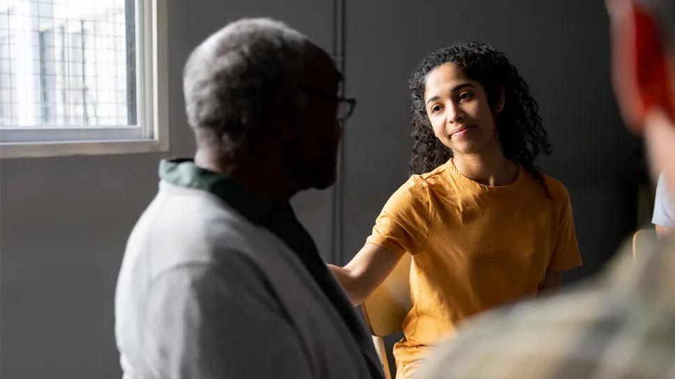 “Patients with blood cancers can have very different needs from those with solid tumors,” explains Dabney V体育安卓版. “Often with a solid tumor, a patient has surgery or chemotherapy or radiation and there is an endpoint to treatment. With blood cancer, especially myeloma, therapy is ongoing. If they’re getting an allogenic transplant, their immune system is compromised for a long time, so often we’re helping patients adjust to what seems like never-ending treatment and helping them with acceptance of a new normal in their life. ”.